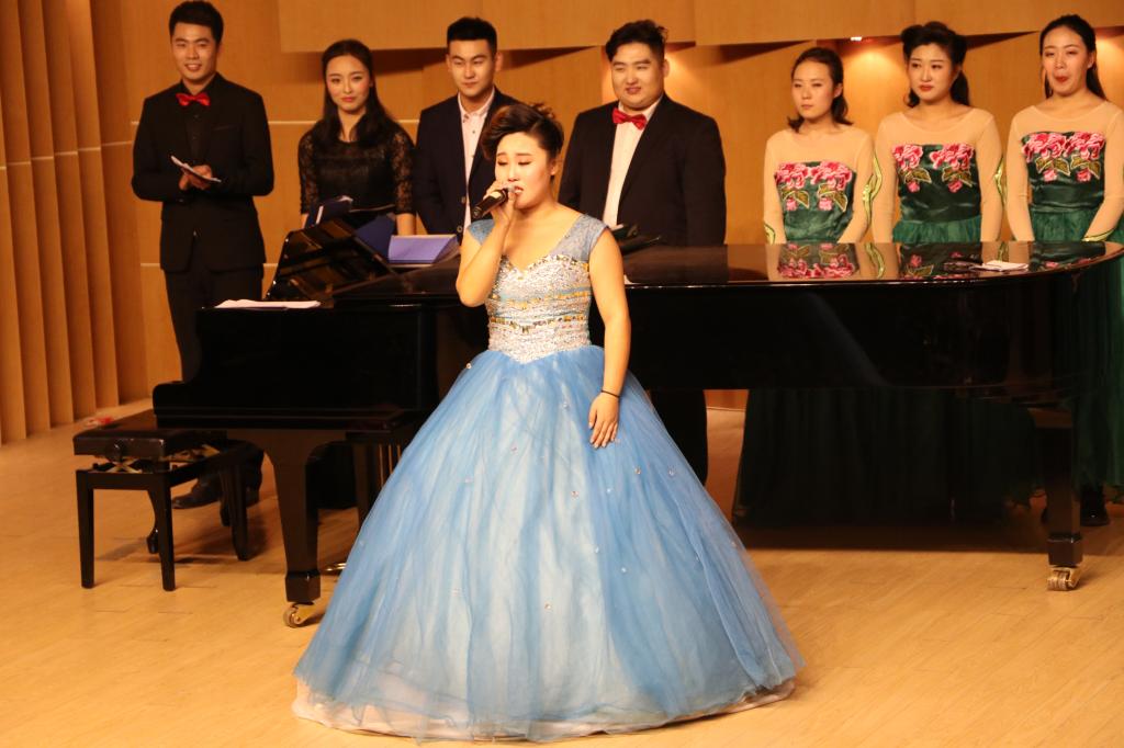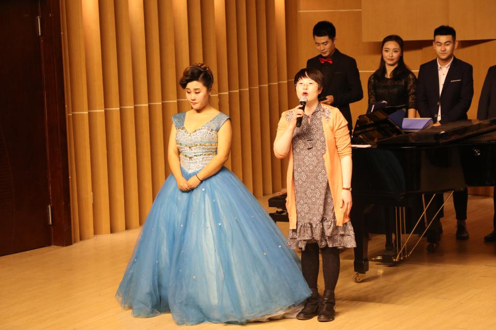 中场结束由主持人悦贺栋和特邀嘉宾贺雪云分别把《三套车》和意大利歌曲《求爱神给我安慰》送给在座的各位老师和同学。